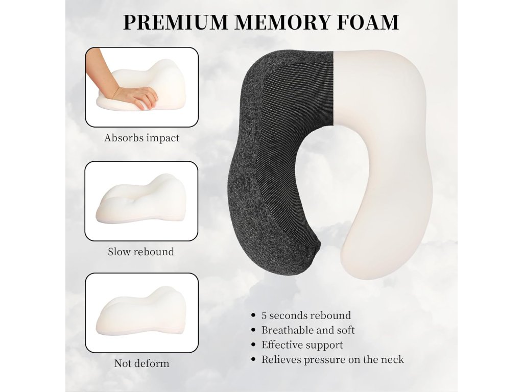 - Polštář pod šíji se skládá ze 100% čisté paměťové pěny bez přísad a disponuje 5 sekundovou technologií zpětného odrazu, která zaručuje pohodlí a trvanlivost. polštář na cesty se perfektně přizpůsobí vašemu tělu a odlehčuje otlakům pro maximální uvolnění.