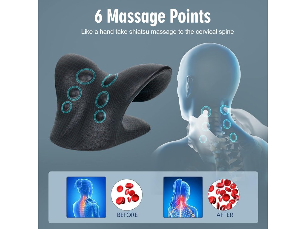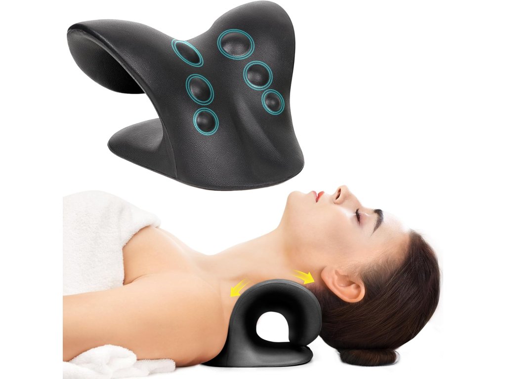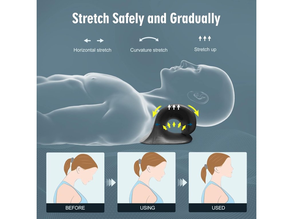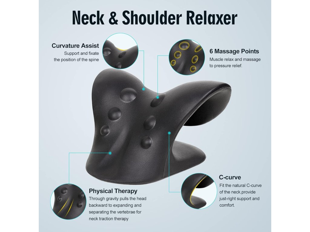 - Tento relaxační pomůcka pro krk a ramena poskytuje trakci krku, uvolňuje krk a ramena a zmírňuje bolest krku. Ideální pro zaměstnance, kancelářské pracovníky, studenty, řidiče a lidi, kteří musí delší dobu sklánět hlavu. Lidé si mohou pohodlněji užívat krční páteř při práci nebo cestování, aby zmírnili únavu krku.