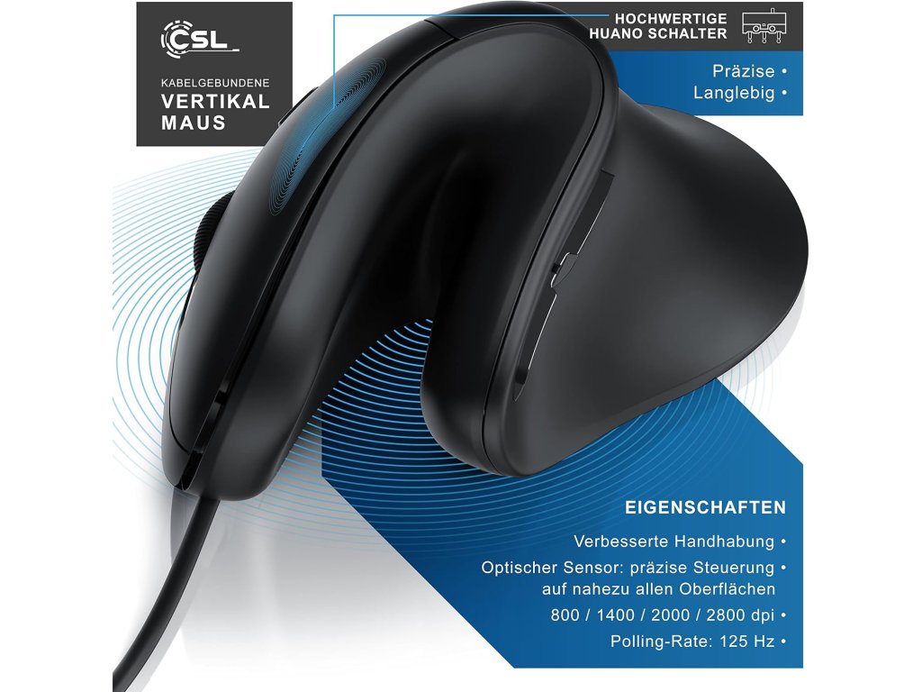- Ergonomický design chrání vaše zápěstí před nepřirozeným zatížením. Jak velké nebo malé by měly být vaše pohyby paže, nastavte pomocí výměnného tlačítka DPI (800 / 1600 / 2400 / 3200 dpi). Abyste i po hodinách mohli pracovat ještě uvolněně.