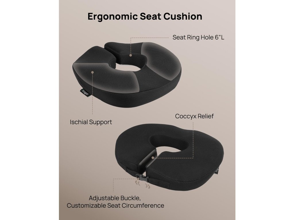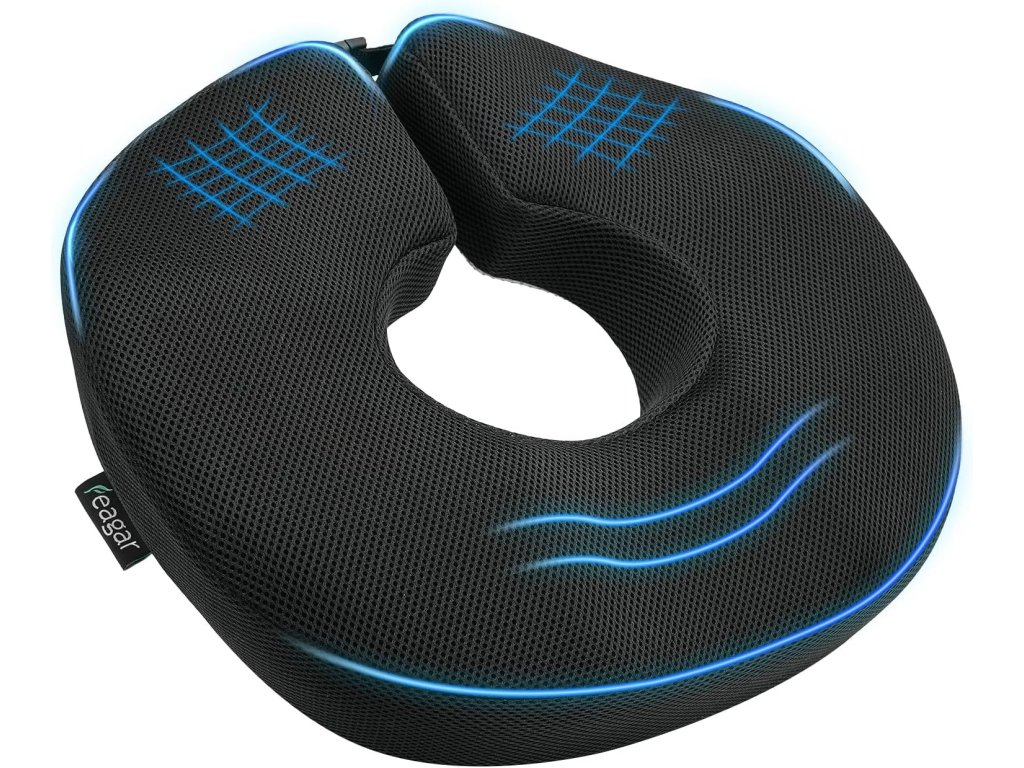 - Na rozdíl od dusných vzduchových polštářů má polštář Feagar Donut prodyšný 3D potah ze síťoviny, který i při dlouhém sezení zachovává chladnou suchost. Odnímatelný potah lze prát v pračce a jádro z paměťové pěny lze čistit dezinfekčními ubrousky.