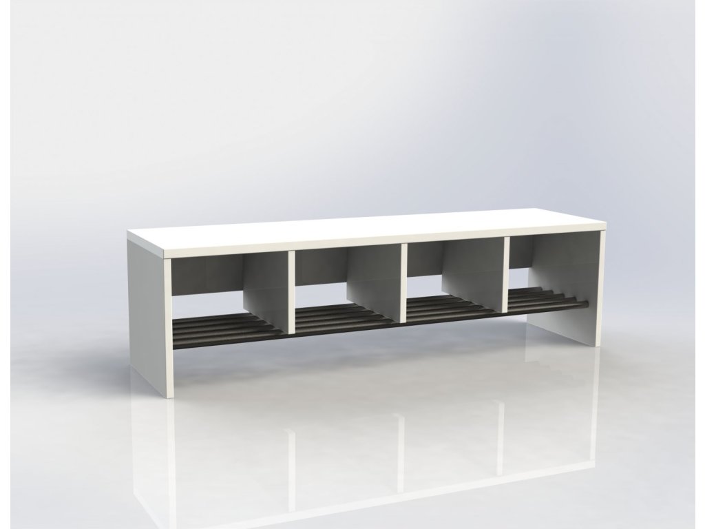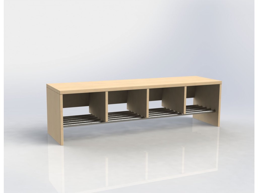 Korpus lavičky je vyrobena z laminovaného materiálu v dezénu přírodní buk nebo javor. Je opatřena kovovým roštem.