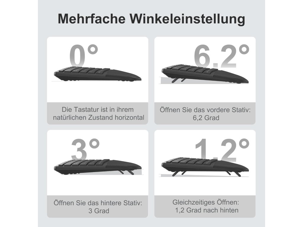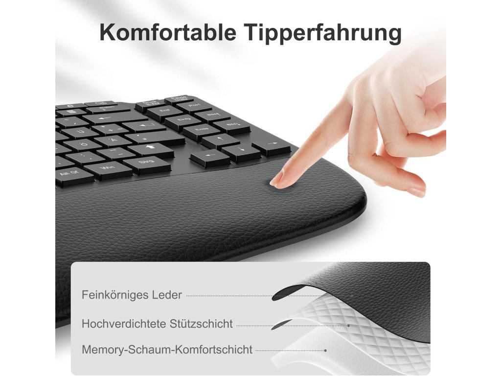 - Polstrované opěrky dlaní s měkkou paměťovou pěnou podporují vaše zápěstí po celý den. Ergonomická klávesnice má 4 sklopné nohy, které lze podle libosti naklonit