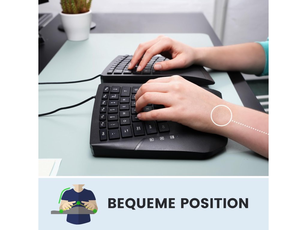 - Nastavitelný úhel náklonu umožňuje perfektní nastavení pro vaši individuální ergonomii. Najděte si ideální pozici psaní.