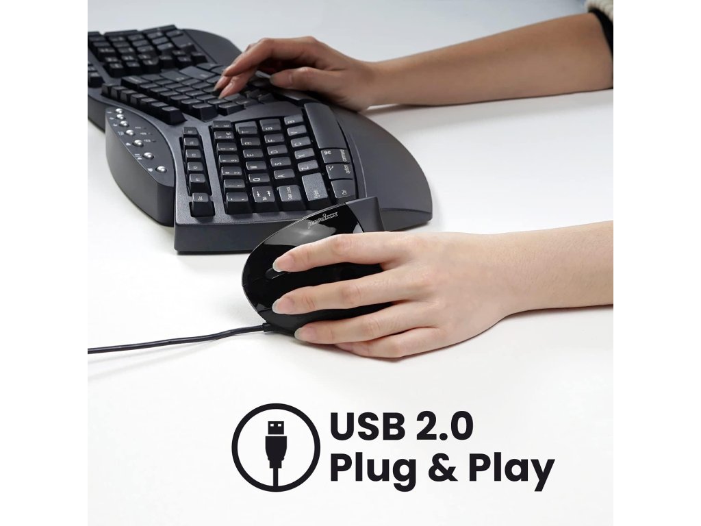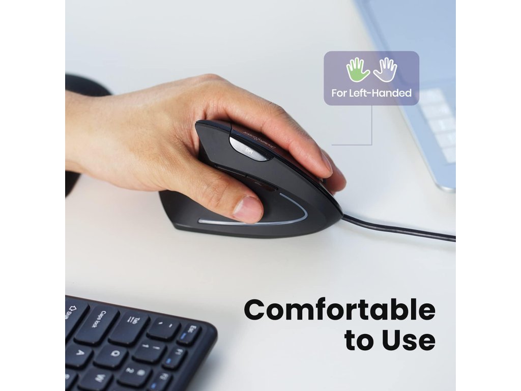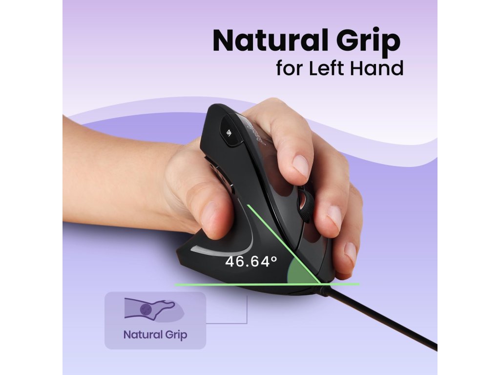 ergonomická vertikální myš s designem pro leváky. Doporučeno pro opakované zatížení, uživatelé RSI a pro uživatele, kteří pracují na počítači obzvlášť dlouho.