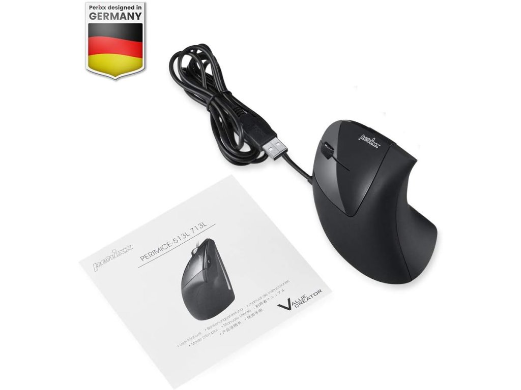 Perixx perimice-513l je ergonomická vertikální myš pro leváky. Je koncipována pro všechny různé velikosti rukou, přizpůsobí se přirozené poloze dlaní a svalů zápěstí.