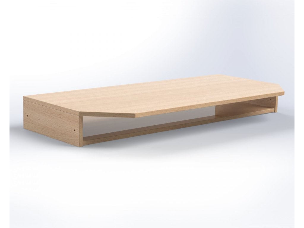 Spojovací díl - stůl je vyroben v kombinaci laminované dřevotřísky v několika dezénech o síle 18 mm, hrany jsou ošetřeny proti poškození 2 mm ABS hranou a masivním bukem, který je povrchově upraven polyuretanovým lakem.