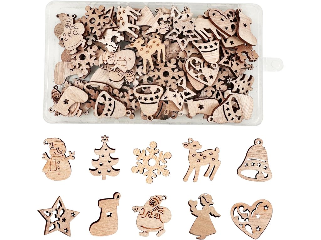 Vánoční dřevěné výřezy 100 kusů na tvoření a výzdobu