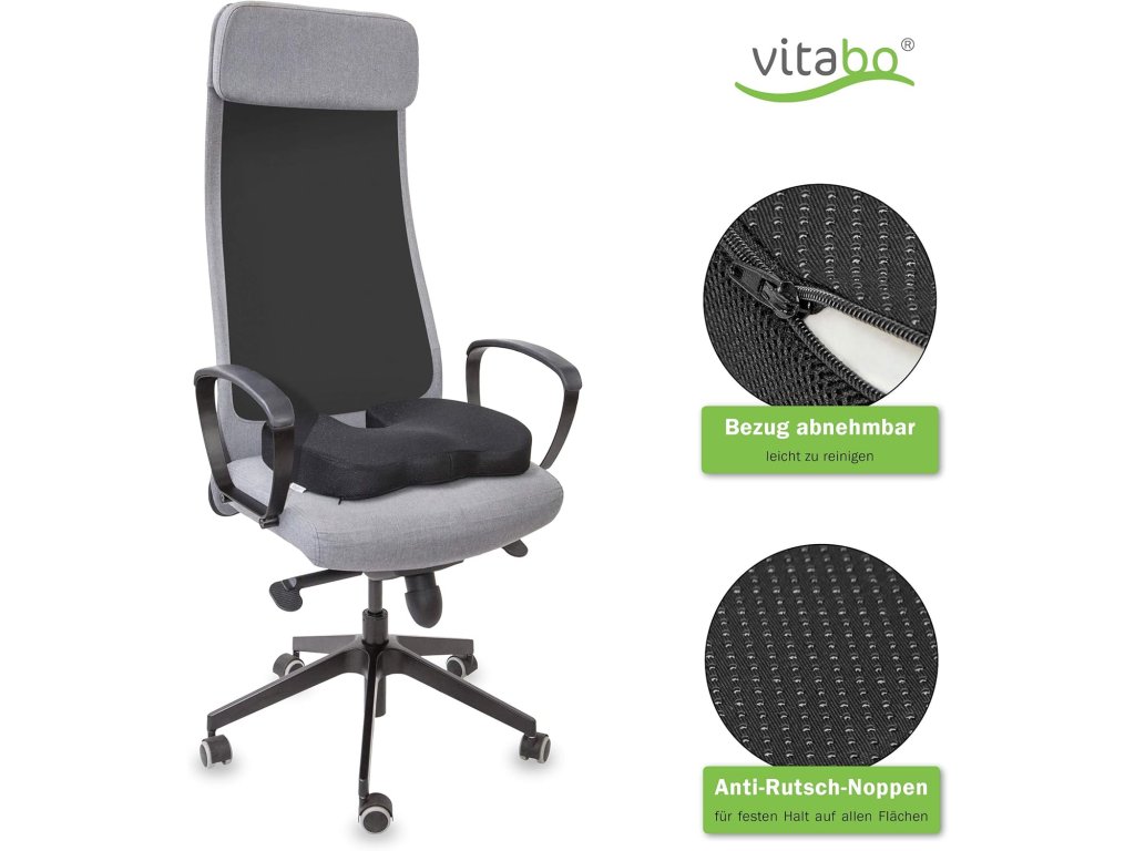 - Mnohostranné využití: Ať už jako sedací polštář s vysokou opěrkou v kanceláři, jako sedací polštář do auta na cesty nebo jako ergonomická podložka na sezení v každodenním životě – polštář Vitabo lze vzít všude s sebou a flexibilně použít.