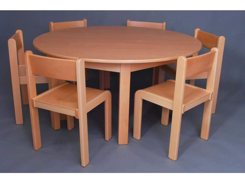 Výhodná sestava - dětský stůl - kruh (v. 40,46,53,59,64), ( prům.120cm ) + 6 židlí ( vel. 26, 30, 34, 38 cm )
