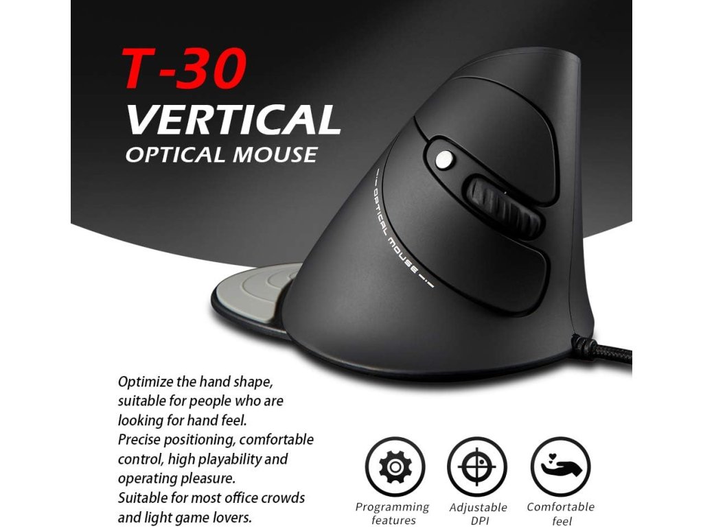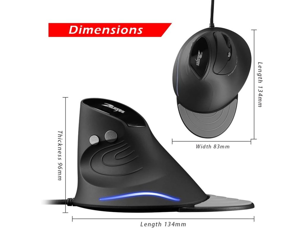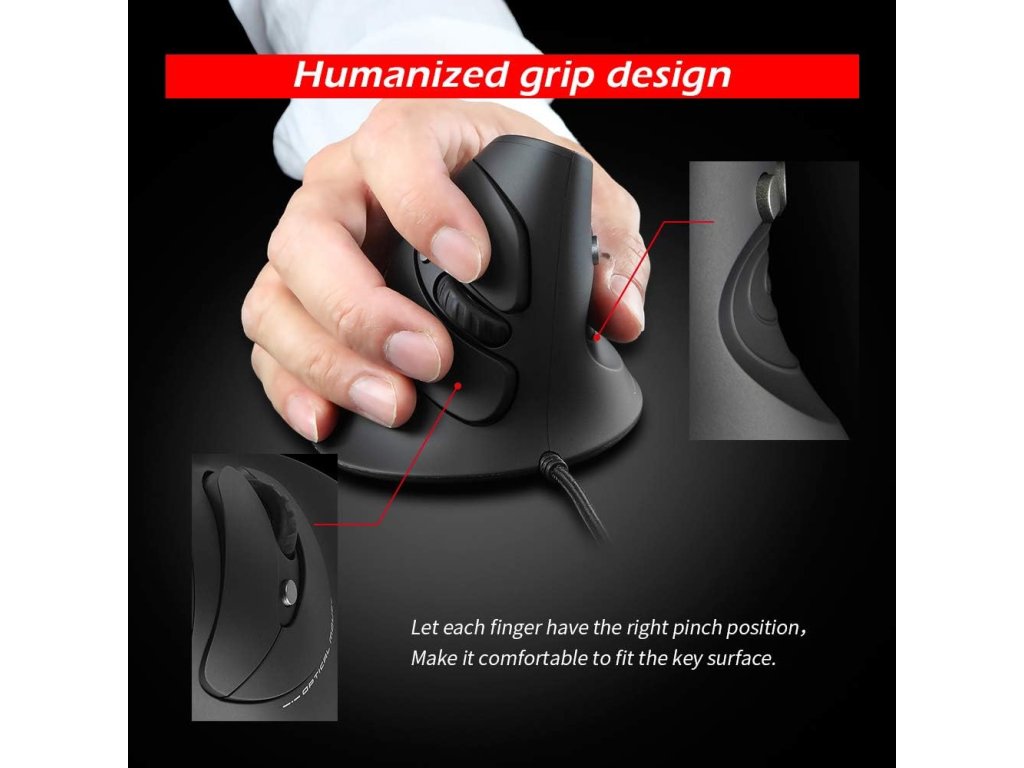 Zelotes - ergonomická vertikální myš pro leváky s 4 úrovní DPI a USB kabelem